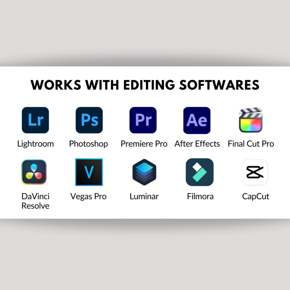 • WORKS WITH EDITING SOFTWARE (Desktop and Mobile) •