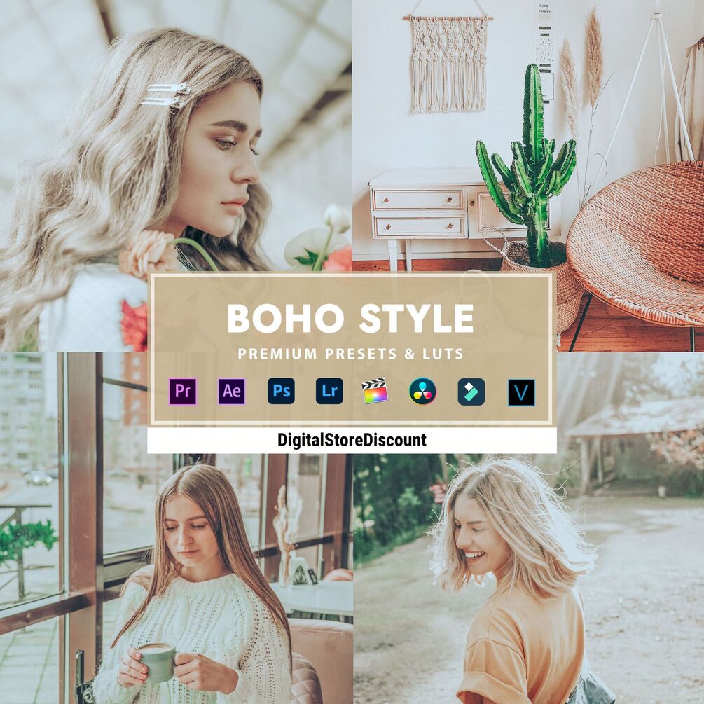 15 BOHO Presets and LUTs | Photo and Video | Premiere Pro, After Effects, Photoshop, DaVinci Resolve, Final Cut Pro, Filmora, CapCut